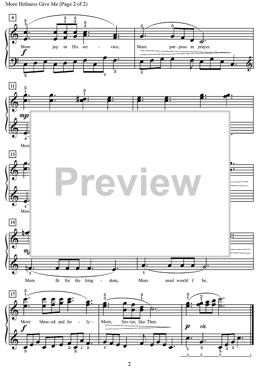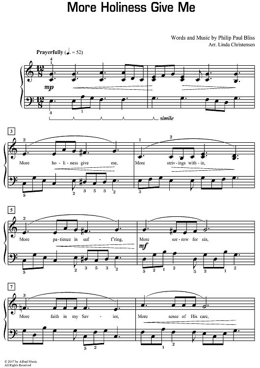 Digital Sheet Music for More Holiness Give Me by Philip P. Bliss, Linda Christensen scored for Piano Solo/opt.duet; id:498234