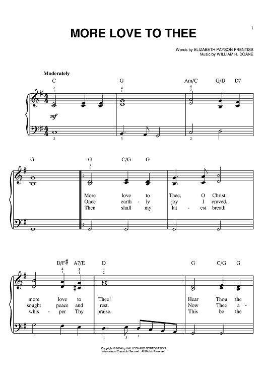 Digital Sheet Music for More Love To Thee (O Christ) by William H. Doane, Elizabeth Payson Prentiss scored for Easy Piano; id:381118