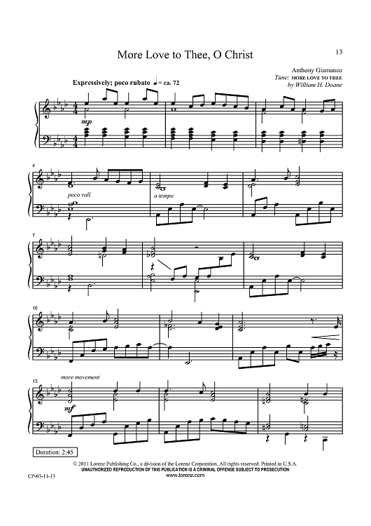 Digital Sheet Music for More Love to Thee, O Christ by William H. Doane, Anthony Giamanco scored for Piano Solo; id:434064