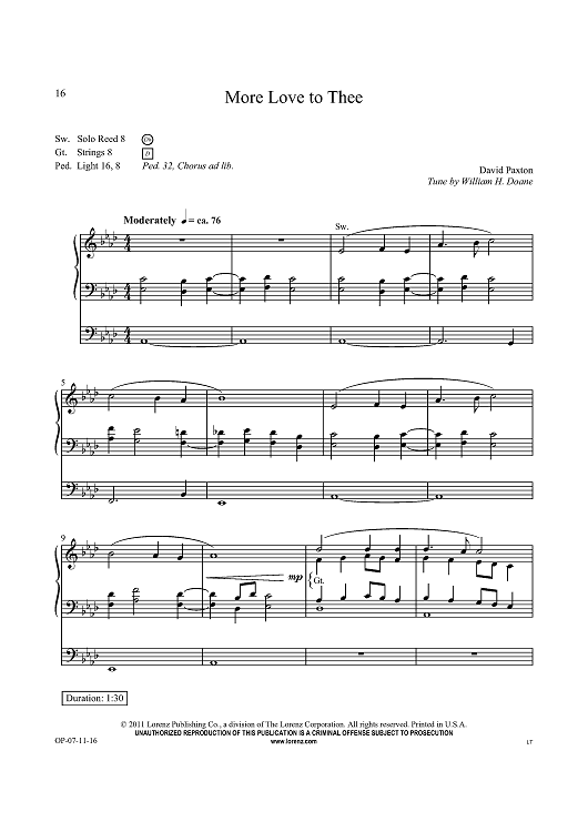 Digital Sheet Music for More Love to Thee by William H. Doane, David Paxton scored for Organ Solo; id:434385