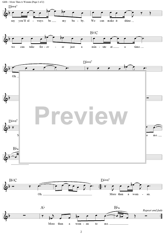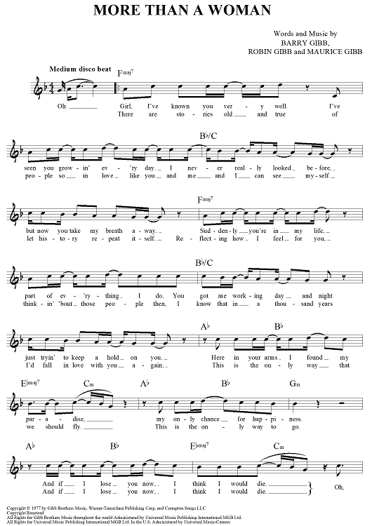 Digital Sheet Music for More Than a Woman by Maurice Gibb, Barry Gibb, Robin Gibb scored for Lead Sheet; id:457260