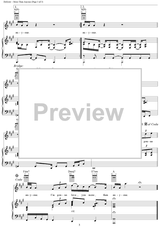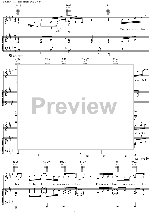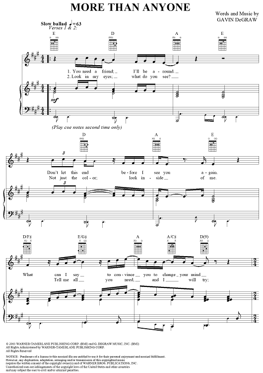 Digital Sheet Music for More Than Anyone by Gavin DeGraw scored for Piano/Vocal/Chords; id:361856