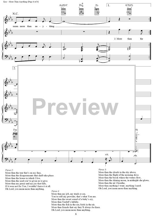Digital Sheet Music for More Than Anything by John P. Kee, New Life scored for Piano/Vocal/Chords; id:297744