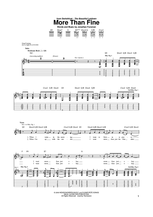 Digital Sheet Music for More Than Fine by Jonathan Mark Foreman, Switchfoot scored for Guitar Tab; id:381964