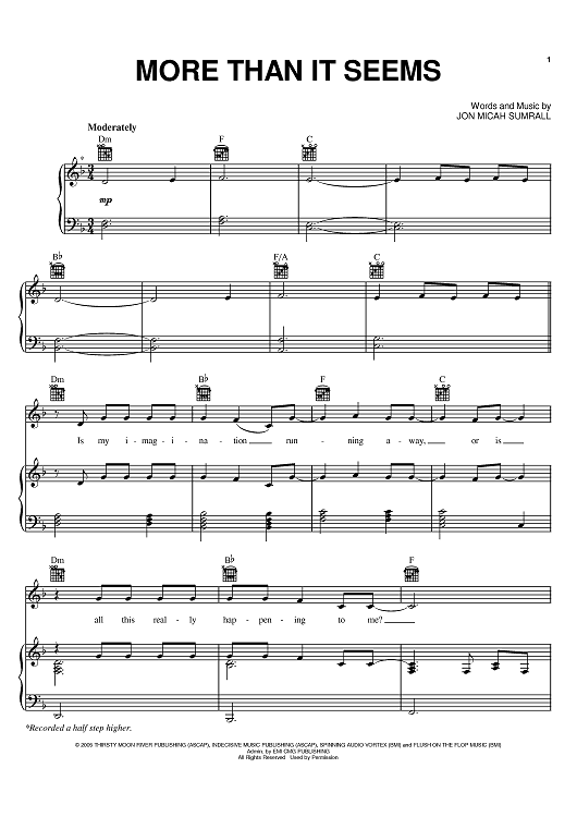 Digital Sheet Music for More Than It Seems by Jon Micah Sumrall, Wild Boar, Kutless scored for Piano/Vocal/Chords; id:388007