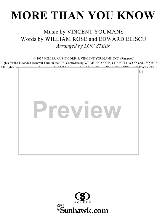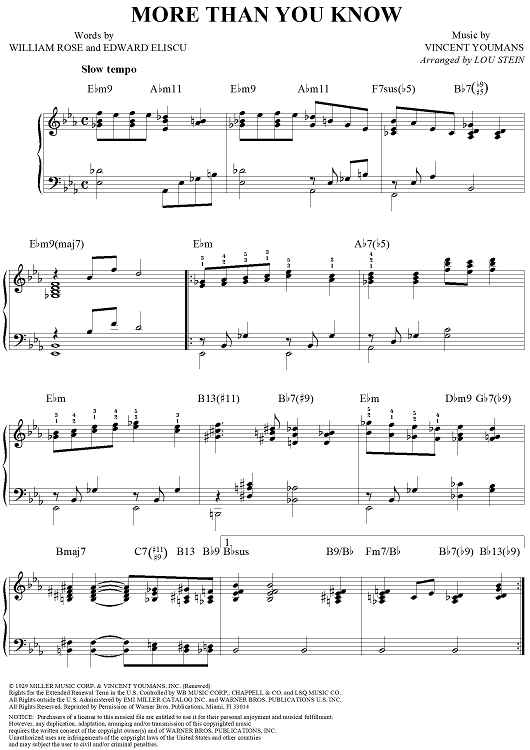Digital Sheet Music for More Than You Know by Vincent Youmans, William Rose, Edward Eliscu, Lou Stein scored for Piano Solo; id:124063