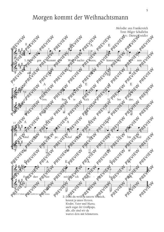 Digital Sheet Music for Morgen kommt der Weihnachtsmann by Dieter Kreidler scored for 1-3 Guitars (melody Instruments In C Ad Lib.); id:481734