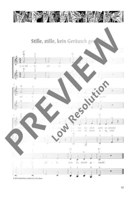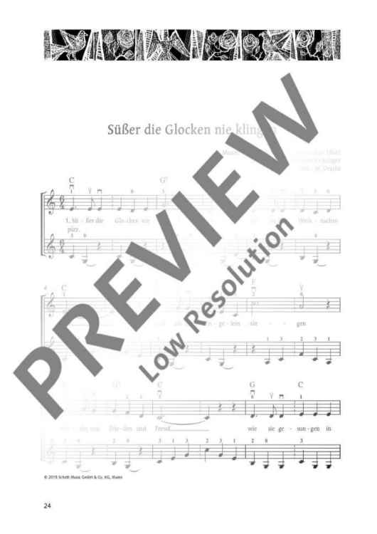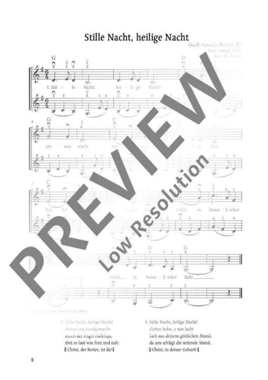 Die bekanntesten Weihnachtslieder in leichten Sätzen für Unterricht und Hausmusik, mit Illustrationen von Wilfried Blecher. In der Kombination mit parallel erschienenen Heften ergeben sich vielfältige Besetzungs- und Aufführungsmöglichkeiten. Zusätzliche Harmonie-Symbole ermöglichen auch eine Begleitung mit Gitarre ad lib. Folgende Besetzungen sind möglich: 1. Stimme (Melodie): Querflöte I, Violine I, Viola I, Violoncello I, (Gesang) - 2. Stimme: Querflöte II, Violine II, Viola II, Violoncello II dazu: Klavier, Gitarre ad lib.