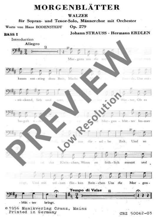 Digital Sheet Music for Morgenblätter - Bass I by Johann Strauß (Son) scored for Men's Choir (ttbb), Soloists (st) And Piano; id:478982