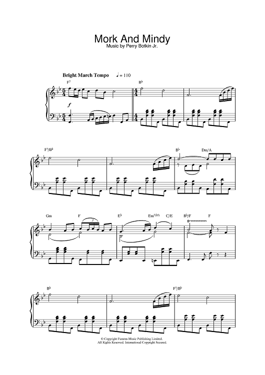 "Mork And Mindy" Sheet Music by Perry Botkin Jr.