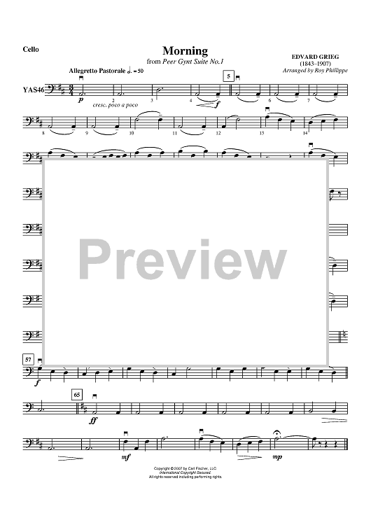 Digital Sheet Music for Morning - Cello by Edvard Grieg, Roy Phillippe scored for Orchestra; id:408142
