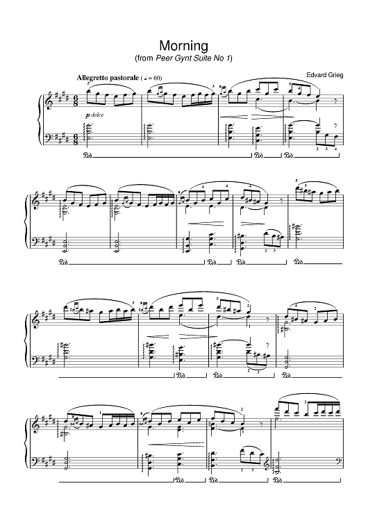 Digital Sheet Music for Morning (from Peer Gynt Suite No 1) by Edvard Grieg scored for Piano; id:378717