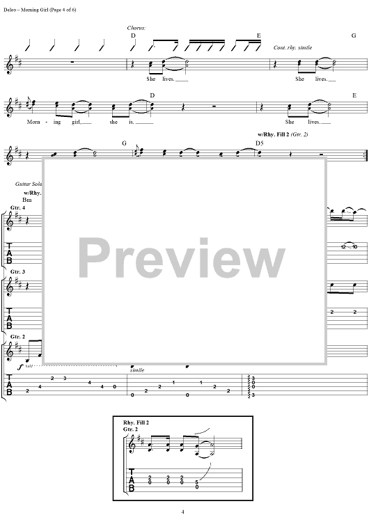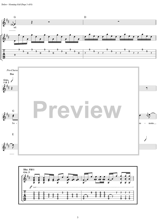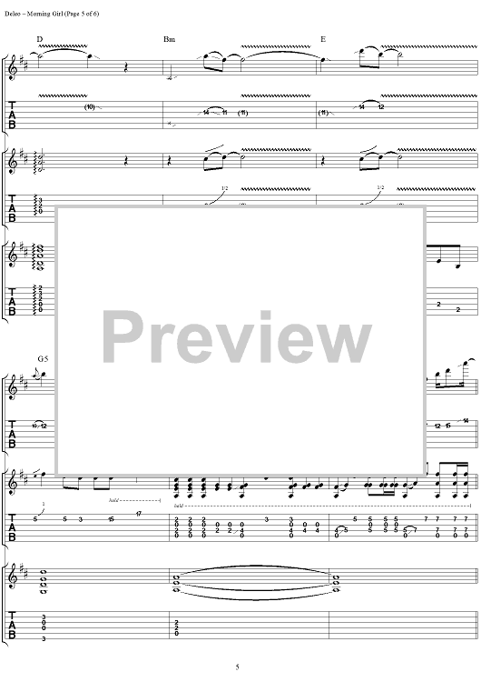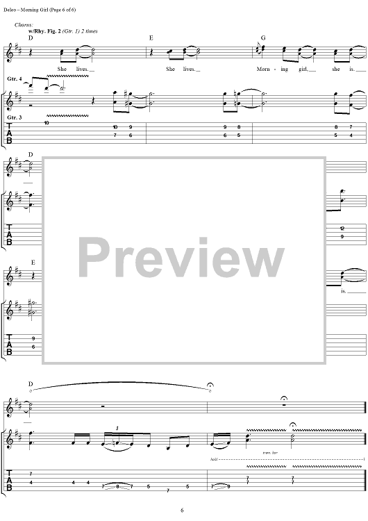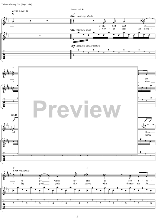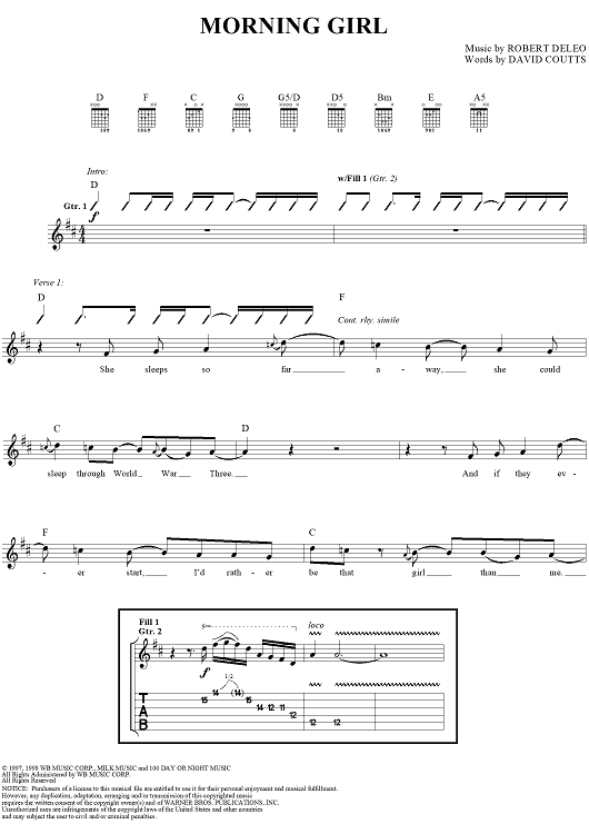 Digital Sheet Music for Morning Girl by Robert DeLeo, David Coutts, Talk Show scored for Guitar Tab/Vocal; id:120123
