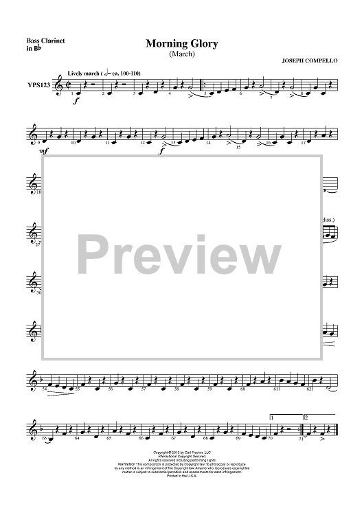 "Morning Glory (March) - Bass Clarinet in Bb" Sheet Music by Joseph Compello