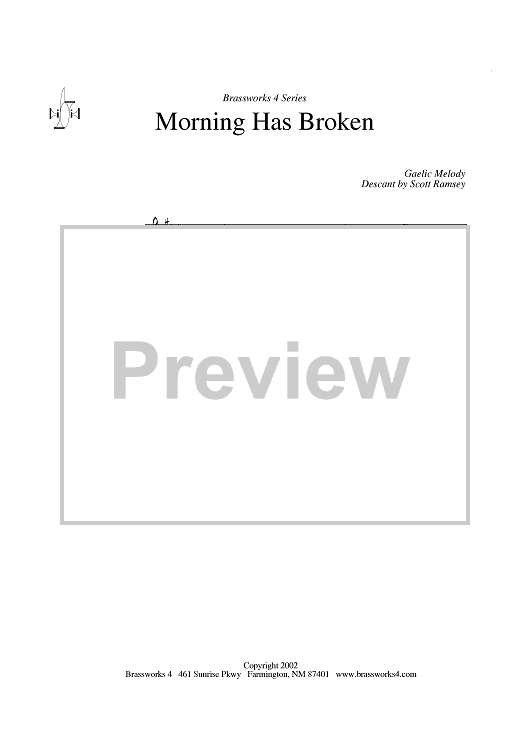 Digital Sheet Music for Morning Has Broken - Cornet 2 in B-flat by Gaelic Melody, Scott A. Ramsey scored for Brass Quartet with Optional Descant; id:317150