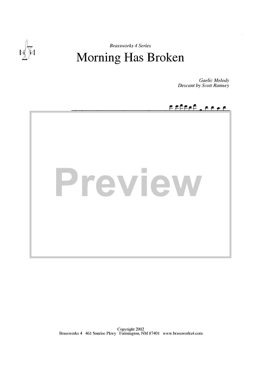 Digital Sheet Music for Morning Has Broken - Descant in C BC by Gaelic Melody, Scott A. Ramsey scored for Brass Quartet with Optional Descant; id:317148