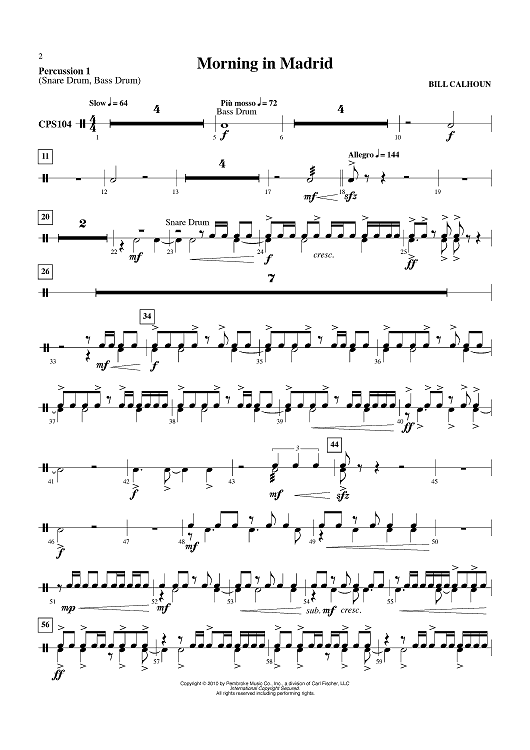 "Morning in Madrid - Percussion 1" Sheet Music by Bill Calhoun
