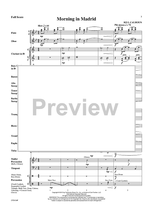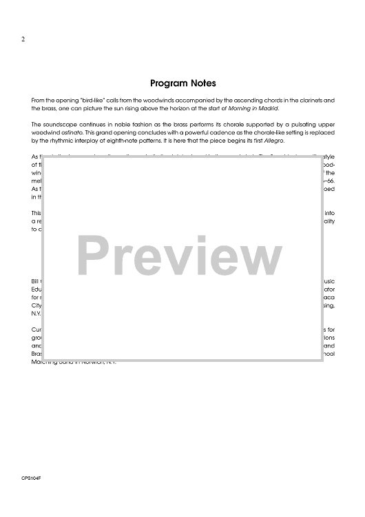 "Morning in Madrid - Score" Sheet Music by Bill Calhoun