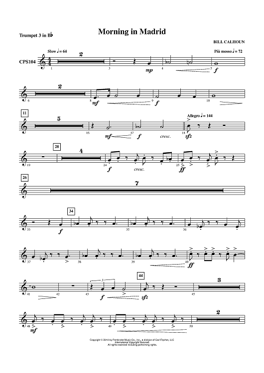 "Morning in Madrid - Trumpet 3 in Bb" Sheet Music by Bill Calhoun