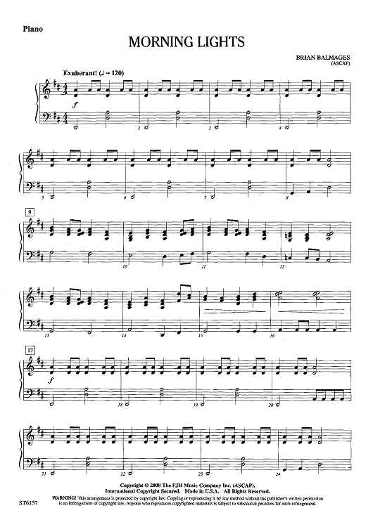 "Morning Lights - Piano" Sheet Music by Brian Balmages
