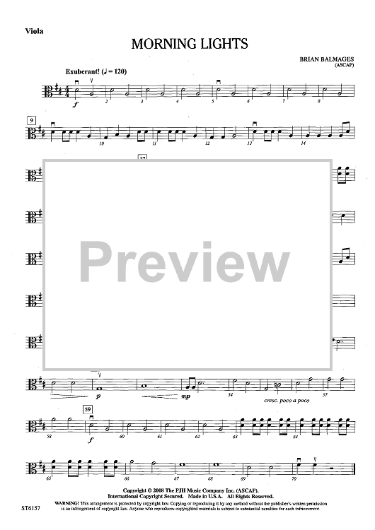 Digital Sheet Music for Morning Lights - Viola by Brian Balmages scored for String Orchestra; id:441213