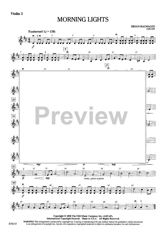"Morning Lights - Violin 2" Sheet Music by Brian Balmages