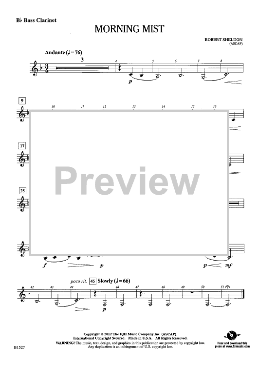 Digital Sheet Music for Morning Mist - Bb Bass Clarinet by Robert Sheldon scored for Concert Band; id:438843
