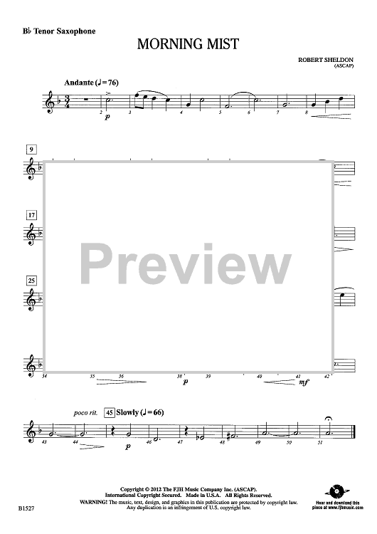 Digital Sheet Music for Morning Mist - Bb Tenor Sax by Robert Sheldon scored for Concert Band; id:438845