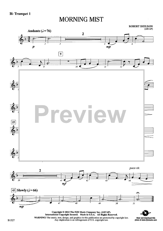 "Morning Mist - Bb Trumpet 1" Sheet Music by Robert Sheldon