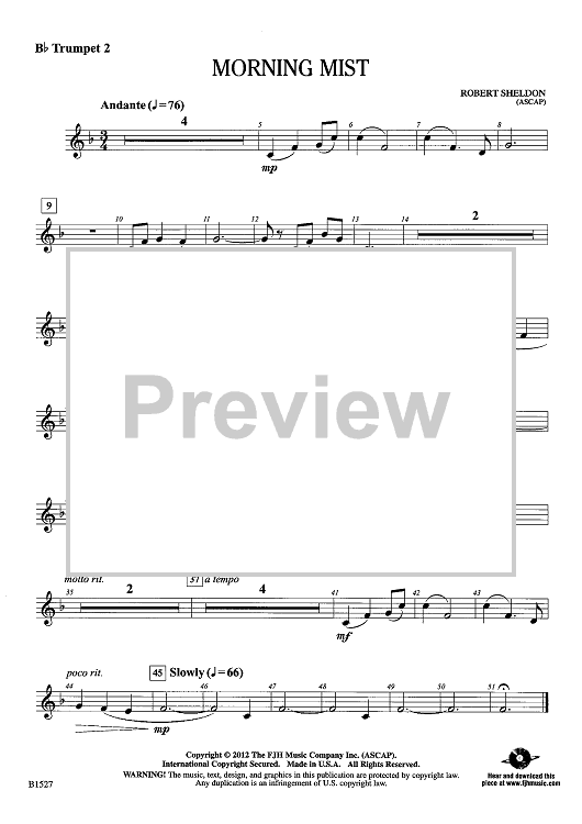 "Morning Mist - Bb Trumpet 2" Sheet Music by Robert Sheldon
