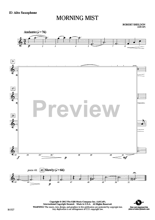 Digital Sheet Music for Morning Mist - Eb Alto Sax by Robert Sheldon scored for Concert Band; id:438844