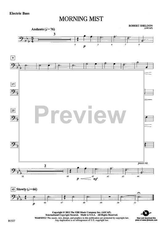 Digital Sheet Music for Morning Mist - Electric Bass by Robert Sheldon scored for Concert Band; id:438854
