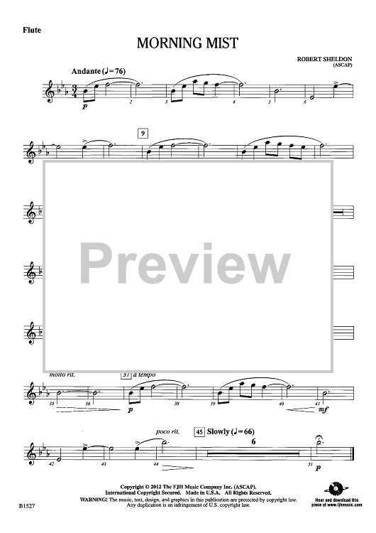 Digital Sheet Music for Morning Mist - Flute by Robert Sheldon scored for Concert Band; id:438837