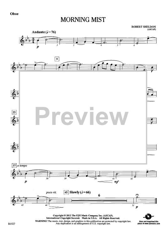 Digital Sheet Music for Morning Mist - Oboe by Robert Sheldon scored for Concert Band; id:438838