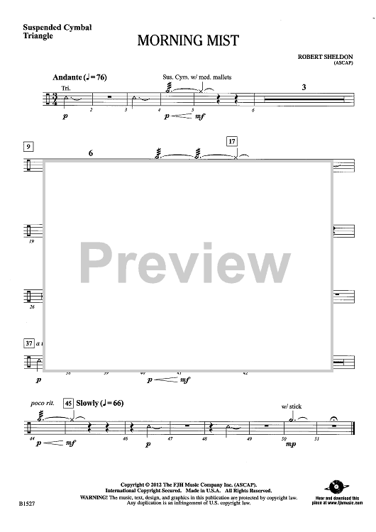 Digital Sheet Music for Morning Mist - Suspended Cymbal by Robert Sheldon scored for Concert Band; id:438856