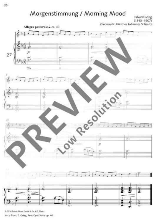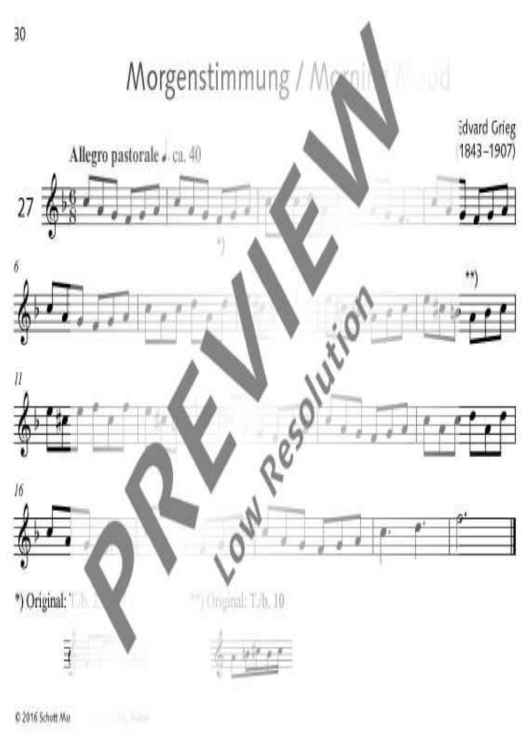 Digital Sheet Music for Morning Mood by Edvard Grieg, Guenther Johannes Schmitz scored for Descant Recorder And Piano; id:490492