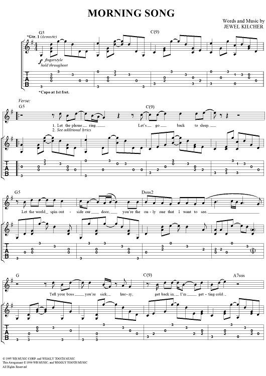 "Morning Song" Sheet Music by Jewel