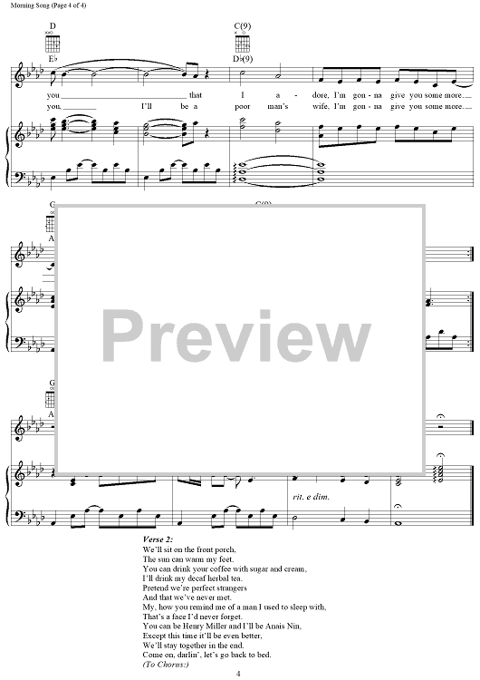Digital Sheet Music for Morning Song by Jewel scored for Piano/Vocal/Chords; id:111556