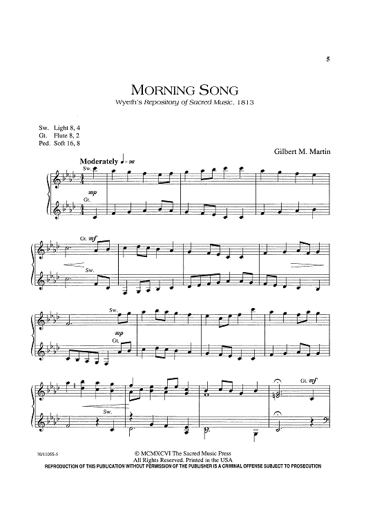 Digital Sheet Music for Morning Song by J. Wyeth, Gilbert M. Martin scored for Organ Solo; id:434221