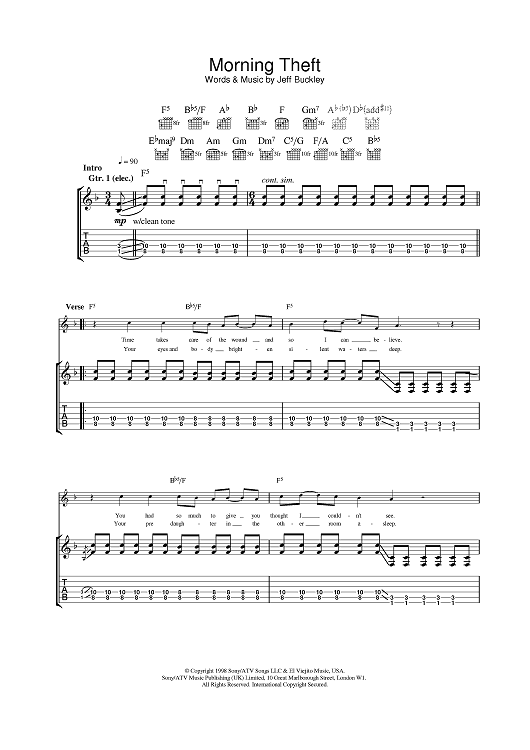 Digital Sheet Music for Morning Theft by Jeff Buckley scored for Guitar Tab; id:376995
