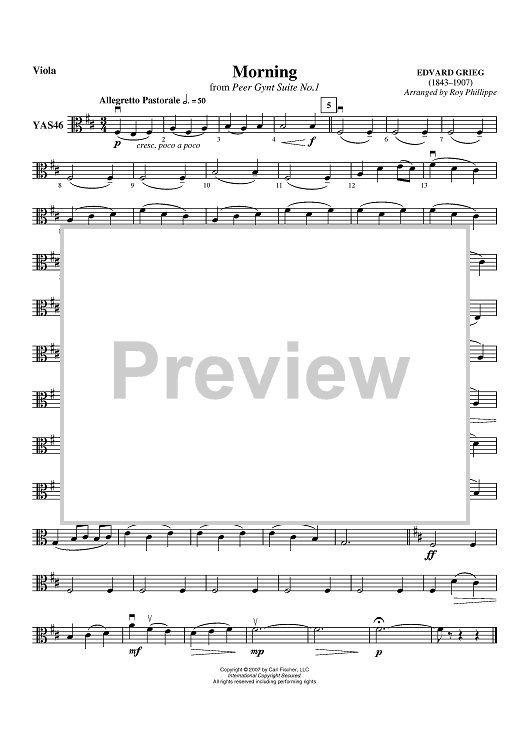 Digital Sheet Music for Morning - Viola by Edvard Grieg, Roy Phillippe scored for Orchestra; id:408141