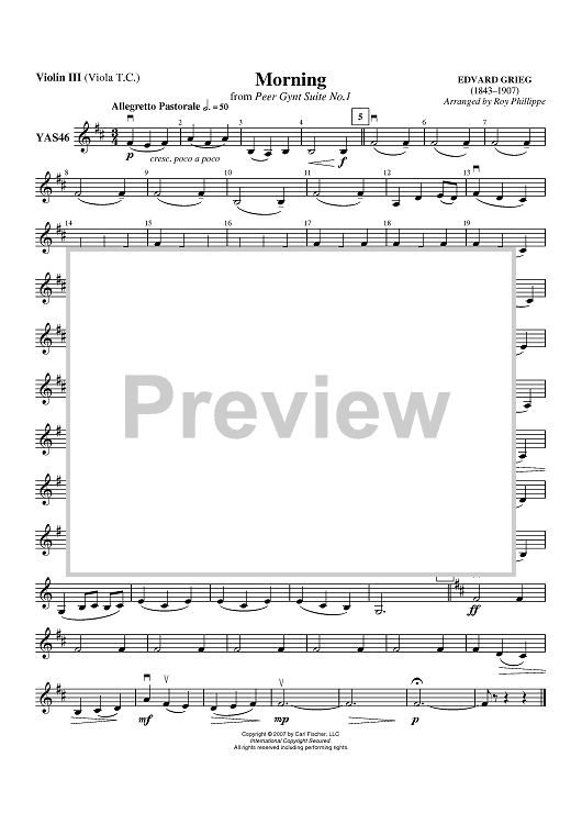 "Morning - Violin 3" Sheet Music by Edvard Grieg