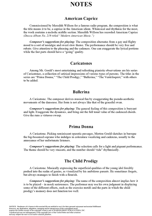 Digital Sheet Music for Morton Gould - Program Notes by Morton Gould scored for Piano Solo; id:320903