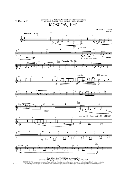 Digital Sheet Music for Moscow, 1941 - Bb Clarinet 1 by Brian Balmages scored for Concert Band; id:437887