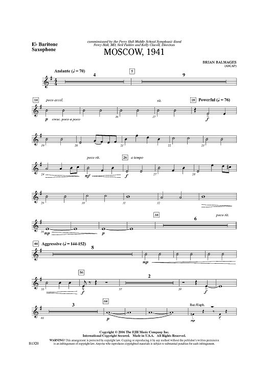 Digital Sheet Music for Moscow, 1941 - Eb Baritone Sax by Brian Balmages scored for Concert Band; id:437893
