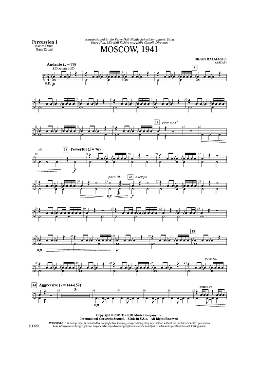 Digital Sheet Music for Moscow, 1941 - Percussion 1 by Brian Balmages scored for Concert Band; id:437904