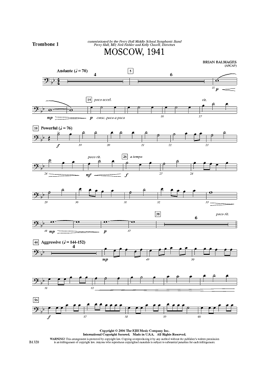 Digital Sheet Music for Moscow, 1941 - Trombone 1 by Brian Balmages scored for Concert Band; id:437897