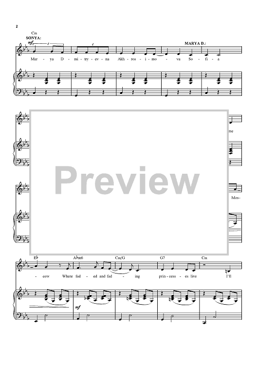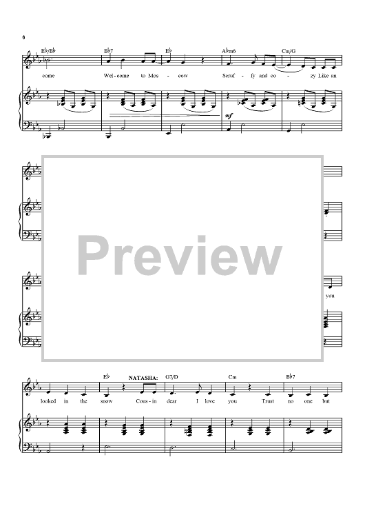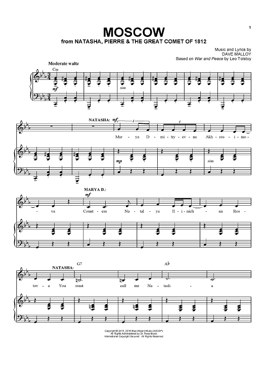Digital Sheet Music for Moscow - from Natasha, Pierre & The Great Comet of 1812 by Dave Malloy scored for Piano/Vocal/Chords; id:464800