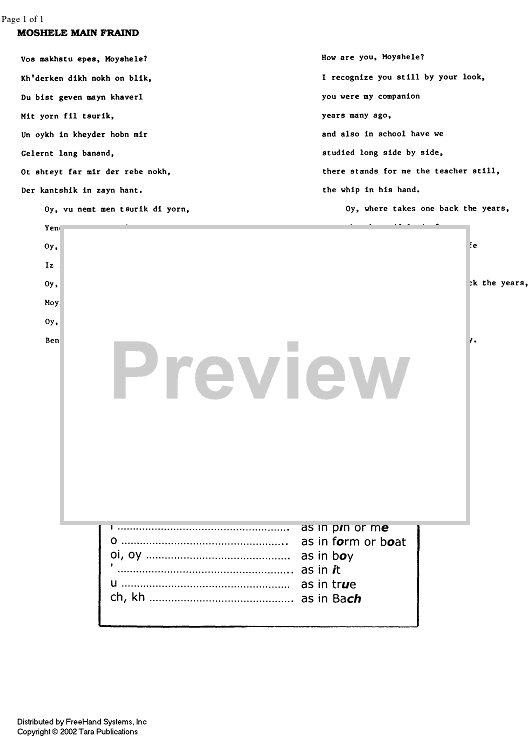 "Moshele Mayn Fraynd - Lyrics" Sheet Music by Mordechai Gebirtig