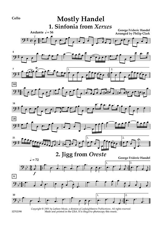 Digital Sheet Music for Mostly Handel - for String Trio - Cello by , Various, Philip Clark scored for String Trio; id:460222